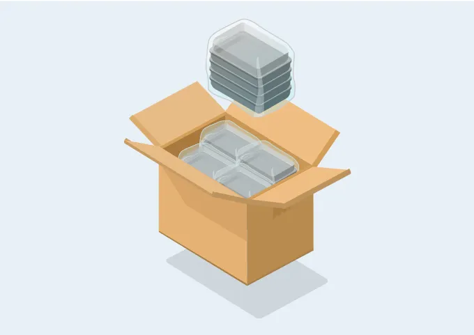 エフピコ商事では、小ロットで商品を購入したいお客様に対し、業務用包装資材・容器・消耗品のECサイト「パックマーケット」を運営しています。東西2カ所の配送センターに商品を在庫し、午前中までの発注は当日に出荷。「必要な時に、必要なものを、必要な数量で」ご注文いただける便利さを提供しています。