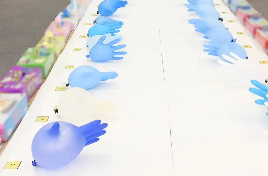 小箱・袋形状の2形状に加え、手袋がズレにくい指絞り形状とご使用シーンに合わせたラインアップが多いのも特徴です。