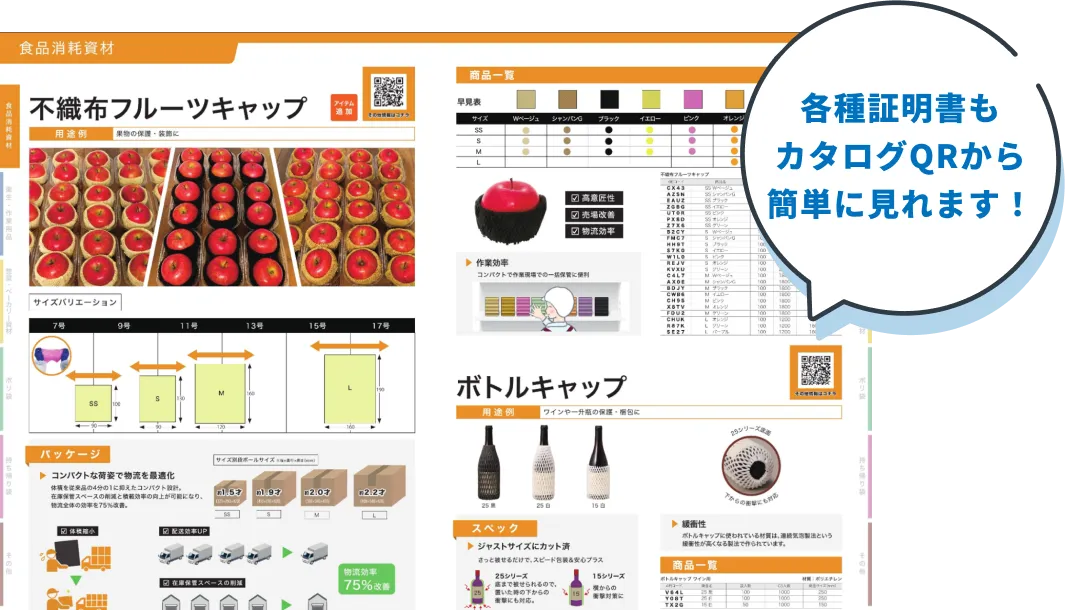 エフピコ商事のプライベートブランド(PB)商品は、食品現場で安心して長くご利用いただけるよう、徹底した品質管理と安定供給体制を整えています。いつも安心してご利用いただけるように、各種証明書もカタログQRから簡単にご確認いただけます。営業による数量情報の収集、在庫管理、生産計画の徹底で、採用後も安定して商品をお届けします。