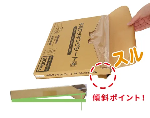 また、クッキングシートについては、半折包装でコンパクトに保管できるほか、1枚ずつ片手で取り出せる角度設計や、衛生的なポリ袋包装など、使う人の利便性と衛生面を徹底的に考え抜いています。