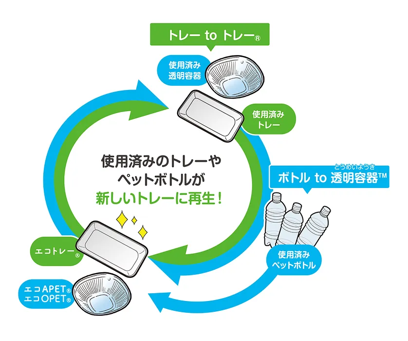 エフピコは世界で初めて使用済みトレーから食品トレー容器に生まれ変わる「循環型リサイクル」を始めました。