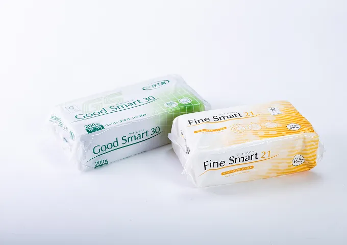 食品を取り扱う作業現場にはパルプ品、お手洗いには再生品など使用環境に応じたラインアップを取り揃えています。