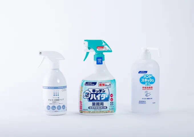 衛生対策に欠かせないアルコールや除菌剤、次亜塩素酸から、食品洗浄などの使用用途にも応じた最適な商品を取り揃えています。