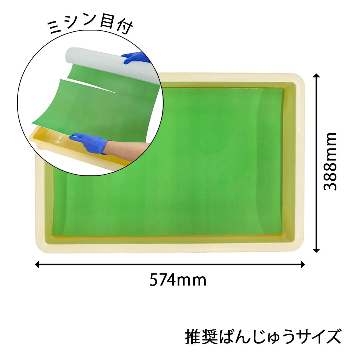 視認性の良い緑色のフィルムを採用しており、フィルム面(剥離側)と不織布面(吸水側)の見分けがつきやすいため、現場での使用間違いを防ぎます。