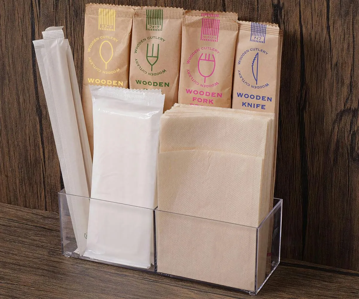 例えば、モバイルオーダー時にカトラリーの有無を選択制にする、あるいは店舗にセルフピックアップ方式を導入することで、配布量自体を30〜50%削減し、資材のコスト増分を相殺している事例が増えています。