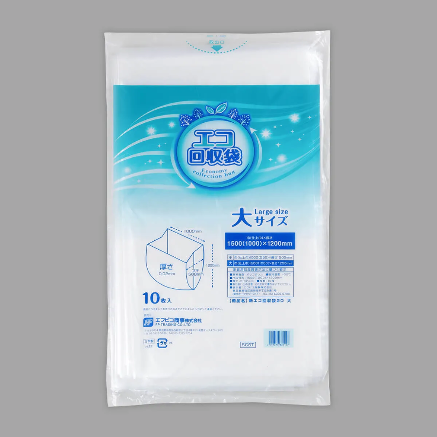 、エフピコ商事のプライベートブランド商品「トレー回収袋」は、エフピコグループの工場内で発生するポリエチレン袋の端材や製造ロスの資材を廃棄せずに再利用した、環境配慮型の商品です。
