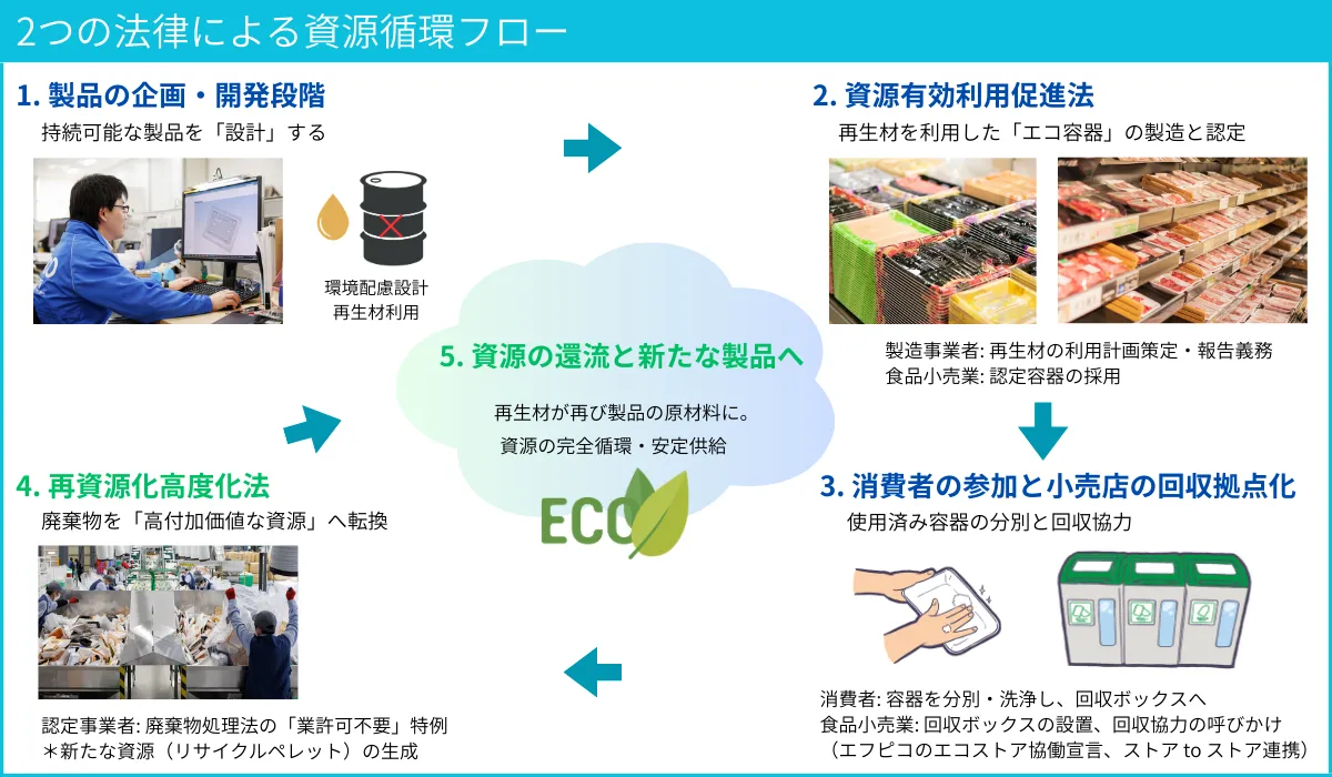 この2つの法律が連携することで、廃棄物の削減と資源の安定供給が同時に推進されます。