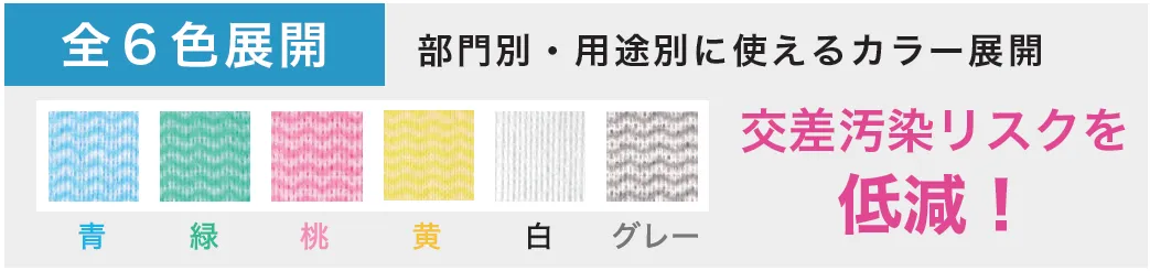 エフピコ商事のカウンタークロスは、現場の声を反映した6色のカラー展開により、誰でも直感的に使い分けができる視覚的な管理体制を実現します。